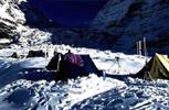 Considering all those experiences from that expedition we developed a special HF antenna (phased three-element vertical array) for the next expedition on Lho Tse in 1981 which was not so dependable on ground conditions as vertical antennas or wire dipoles. On that expedition our antennas worked also very well enabling every day's communication with homeland. See also the pictures of Tomaz Humar Expedition on Dhaulagiri, performed in October 1999. We helped the crew with two VHF directional antennas. You could see some interesting photos from both expeditions by clicking on them.